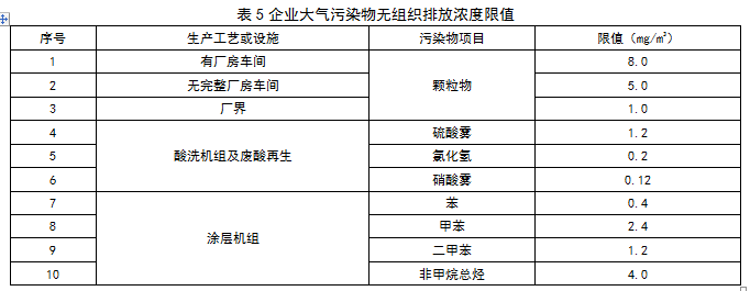 企業(yè)邊界大氣污染物任何1小時(shí)平均濃度執(zhí)行表5規(guī)定的限值。
