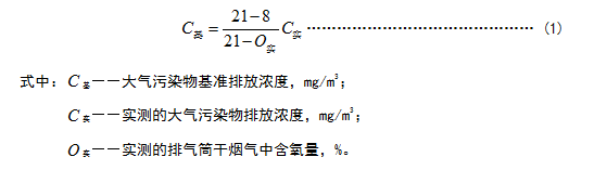 1.4 對于玻璃熔窯排氣(純氧燃燒除外),應(yīng)同時(shí)對排氣中含氧量進(jìn)行監(jiān)測,實(shí)測排氣筒中大氣污染物排放濃度應(yīng)按式(1)換算為含氧量為8%狀態(tài)下的基準(zhǔn)排放濃度,并以此作為排放是否達(dá)標(biāo)的依據(jù)。其他車間或生產(chǎn)設(shè)施排氣按實(shí)測濃度計(jì)算,但不得人為稀釋排放。